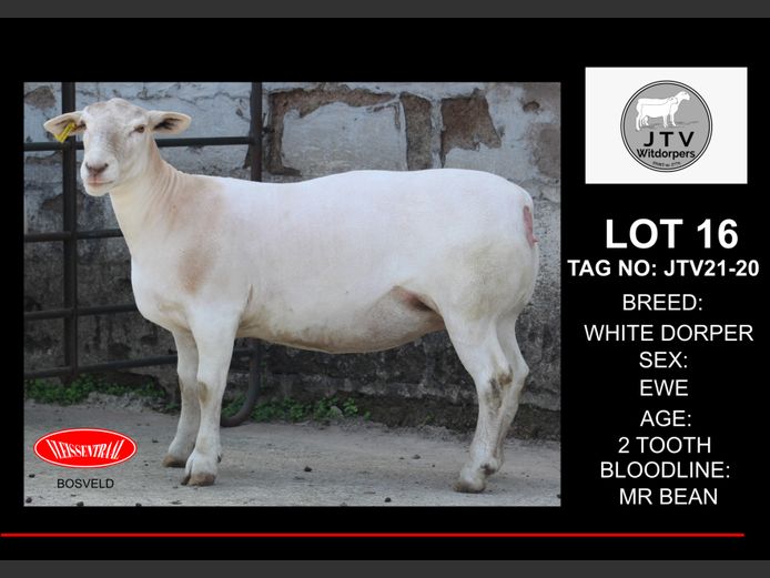 Aanbod: Dorpers: 15 Ramme & 45 Ooie | Witdorpers: 25 Ramme & 35 Ooie. Approvals end at 17:00 the day prior to the auction. Only register if you intend to bid on this auction. No registration required to watch the auction. VeeSure - versekering vir lewendehawe is op dié veiling beskikbaar. For Transport arrangements contact Graig on 082 808 7747. Invoicing | Inquiries after the Auction contact Basie on 082 261 4625.
