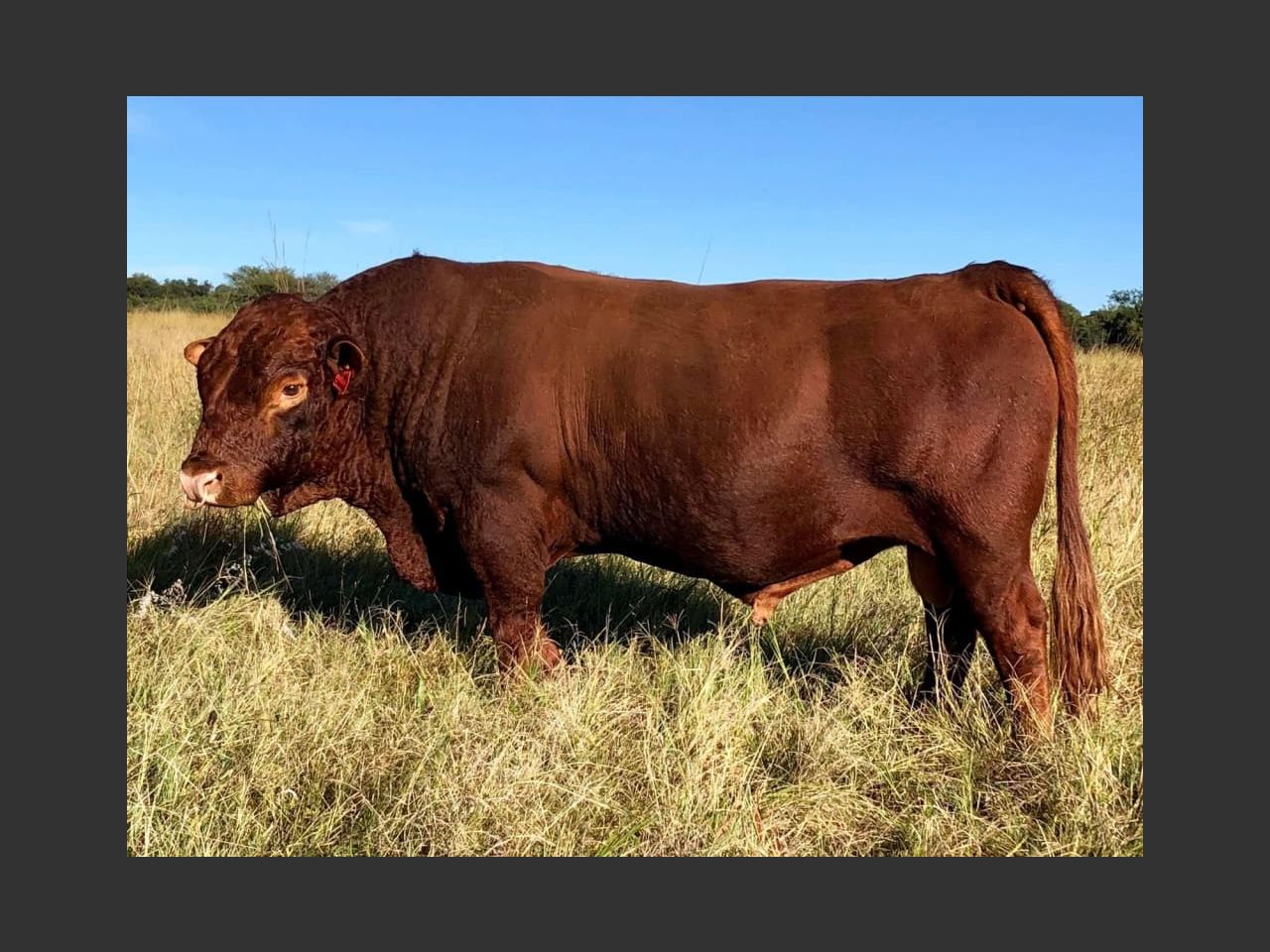 Donor: Rooipan Dexters, Willie Jacobs. KI geregistreerde bul.. Enigste rooi poenskop wat as KI bul geregistreer is by SA Stamboek in SA.