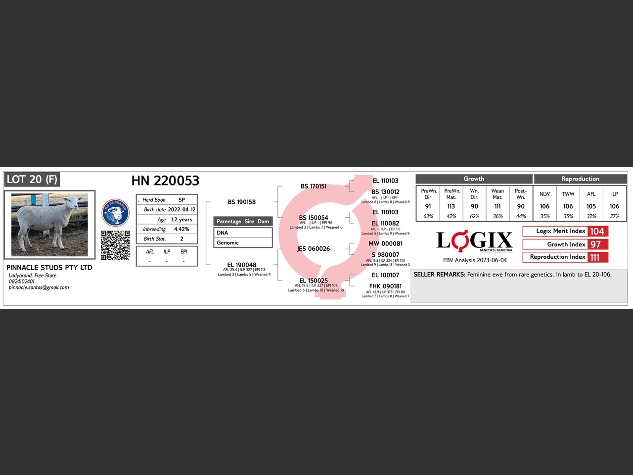 Feminine ewe from rare genetics. In lamb to EL 20-106.