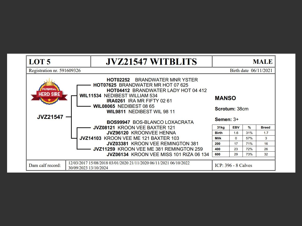 Bull | Manso | Birth Date: 06/11/2021 | Scrotum: 38cm | Semen: 3+