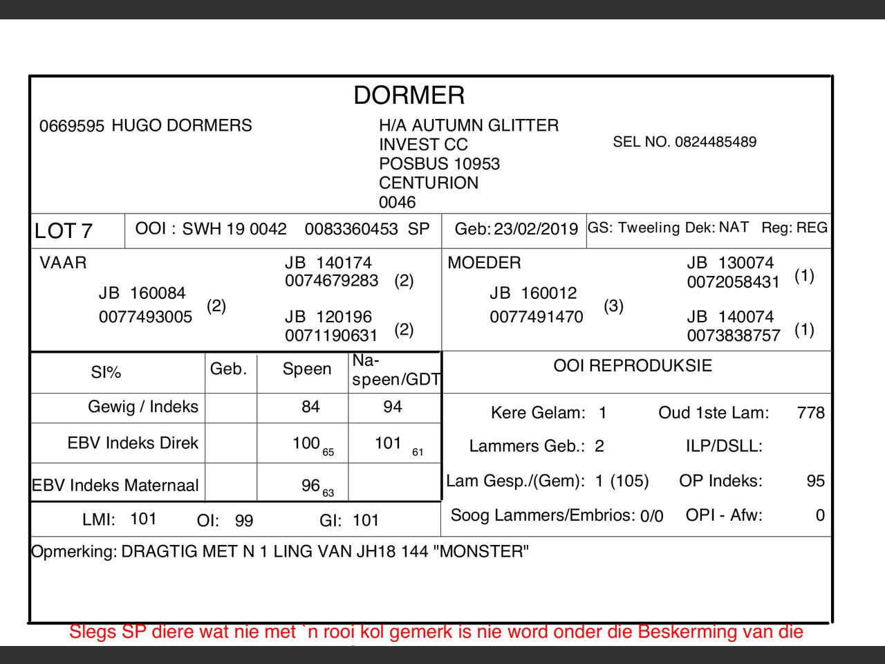 Vaar: JB 160084 | Moeder: JB 160012. DRAGTIG MET N 1 LING VAN JH18 144 "MONSTER"