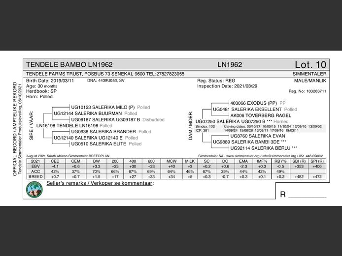 Female | SP | Birth Date: 2016/08/13 | Verkoop met bulkalf LN21187 van LN172.