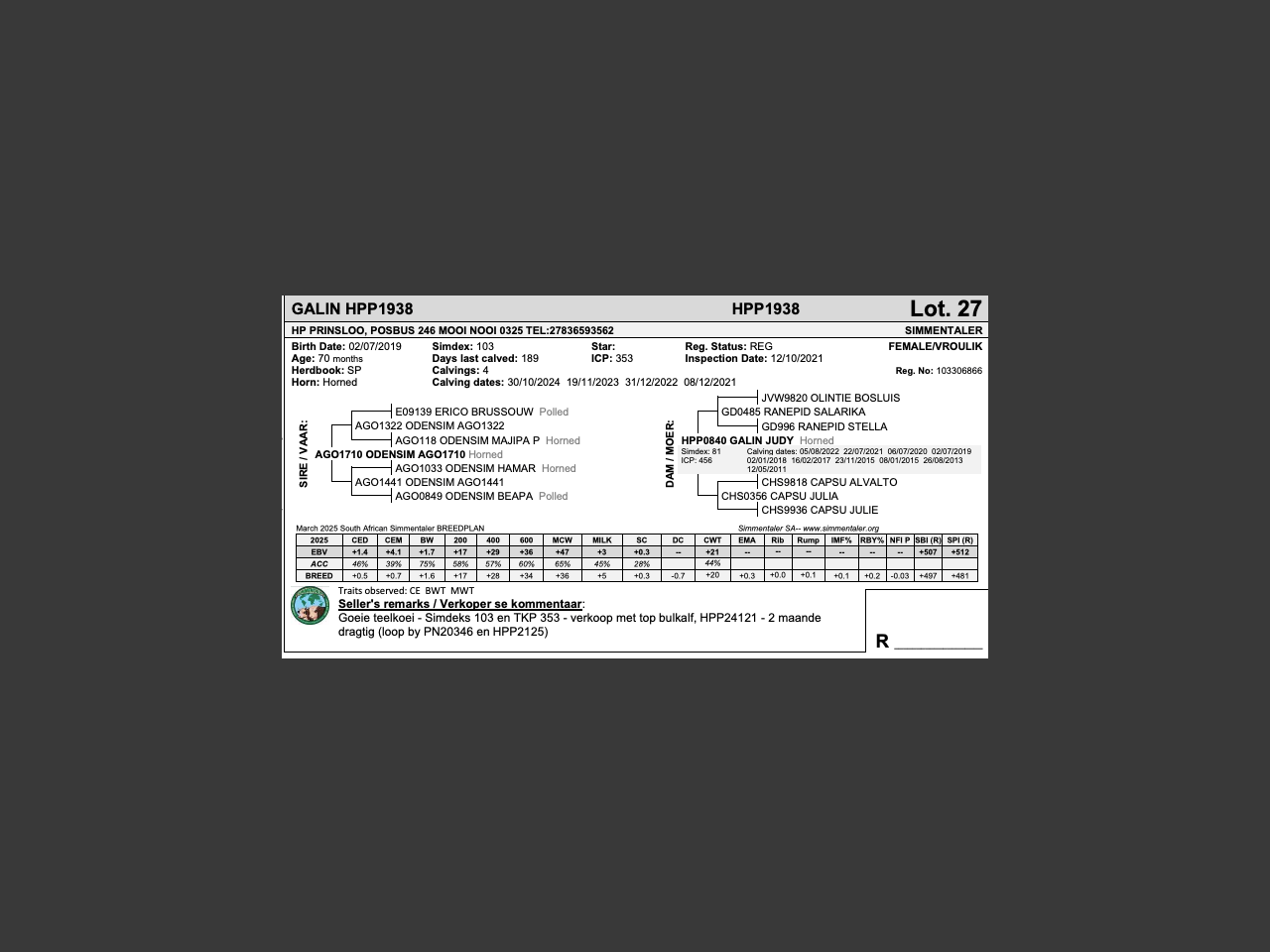 Goeie teelkoei - Simdeks 103 en TKP 353 - verkoop met top bulkalf, HPP24121 - 2 maande dragtig (loop by PN20346 en HPP2125)