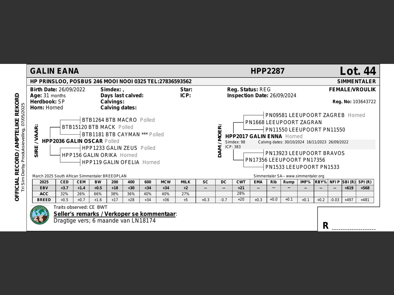 Pregnant Heifer | SP | Birth Date: 26/09/2022 | Horned | 6 Months Pregnant