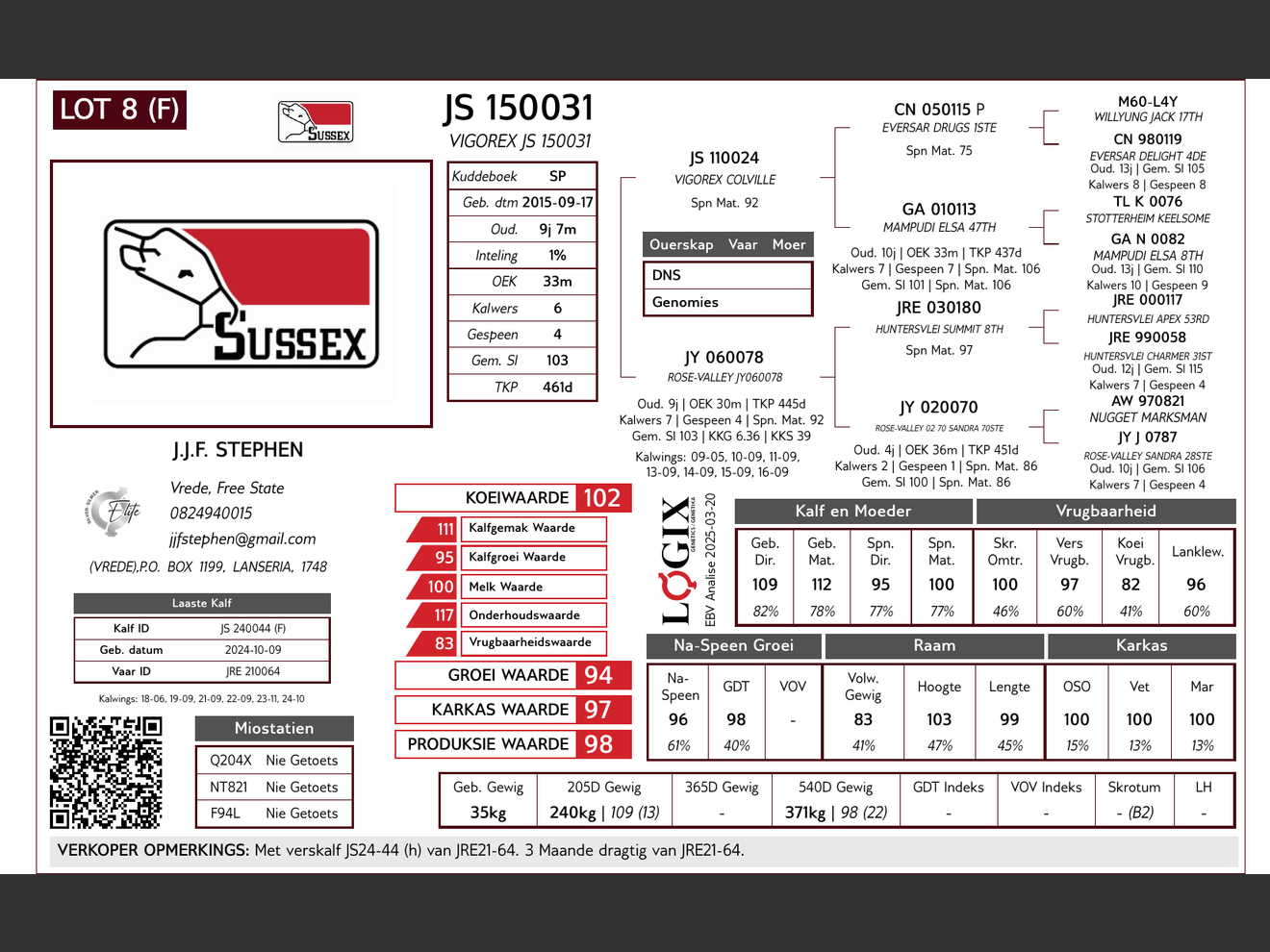 3-in-1 Female | SP | Birth Date: 2015-09-17 | 3 Months Pregnant | Heifer Calf JS24-44