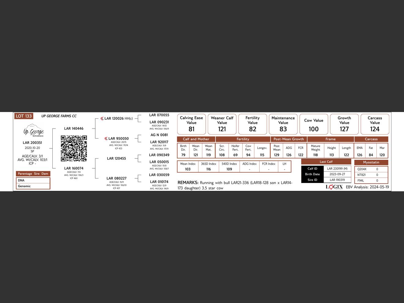 Running with bull LAR21-336 (LAR18-128 son x LAR14- 173 daughter) 3.5 star cow